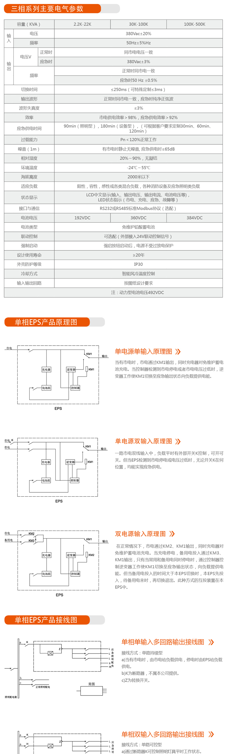 EPS:在電網(wǎng)正常時(shí)處于睡眠狀態(tài),耗電不足0.1%,無(wú)電網(wǎng)供電時(shí),其效率92%以上